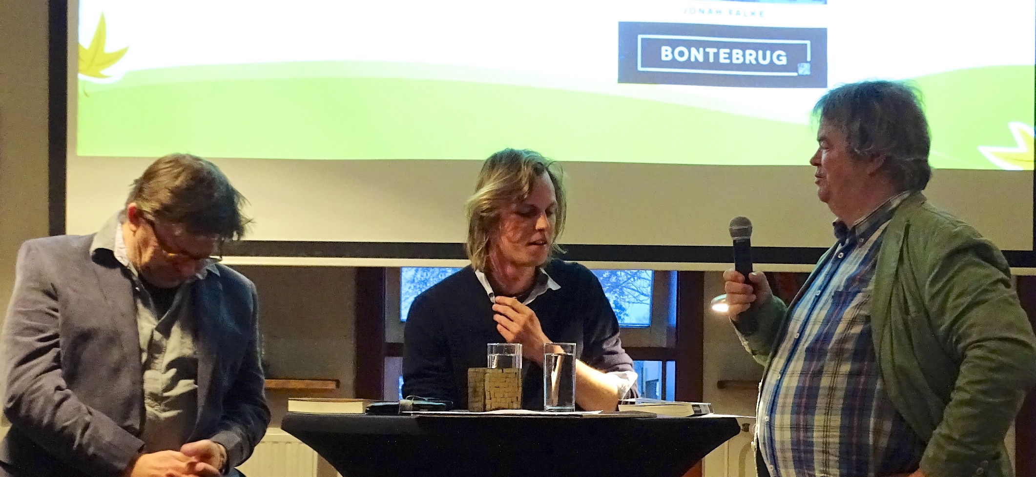 De schrijver & kunstschilder Jonah Falke werd geïnterviewd door ‘De Gelderlander’-columnisten Hans Mellendijk en Bert Scheuter. Jonah studeerde af aan ArteZ Enschede in de richting fine art painting. Voor zijn eindexamen moest de jonge schilder een scriptie schrijven. Via, via belandde de scriptie bij uitgeverij Lebowksi en werd uiteindelijk een boek: ‘Bontebrug’. Een verhaal waarin Jonah de typische verschillen van het leven op het Achterhoekse platteland en de stad op een bijzondere manier beschrijft. Het leverde hem de nominatie ‘beste boek van Achterhoek en Liemers’ op. Inmiddels is hij bezig aan zijn tweede roman.